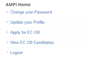 Before you can access the EC Office Bearer Nominations, make sure you have logged on on the AMPI Website. After logging the AMPI website, member may find the link Apply for EC OB. Click on the link to submit your nomination for EC OB post.