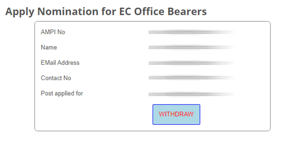 Now click on WITHDRAW button to withdraw your nomination.